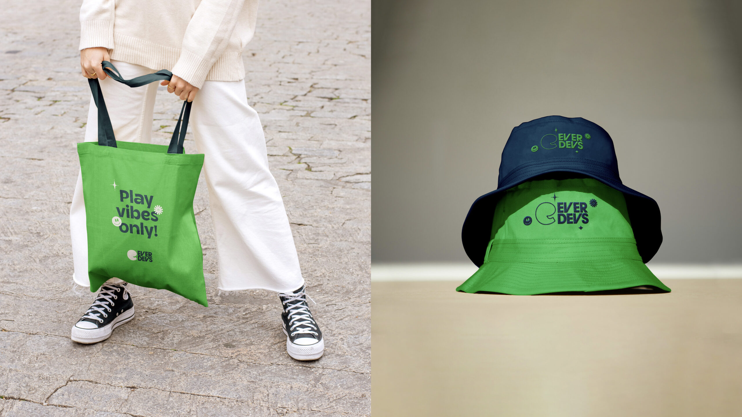 EverDevs’ visual identity is anchored on a distinctive brand mark featuring a solid lowercase “e”. The lower stroke of the “e” is intentionally designed to evoke a smile, visually communicating the brand’s core value of joy and positive outlook.